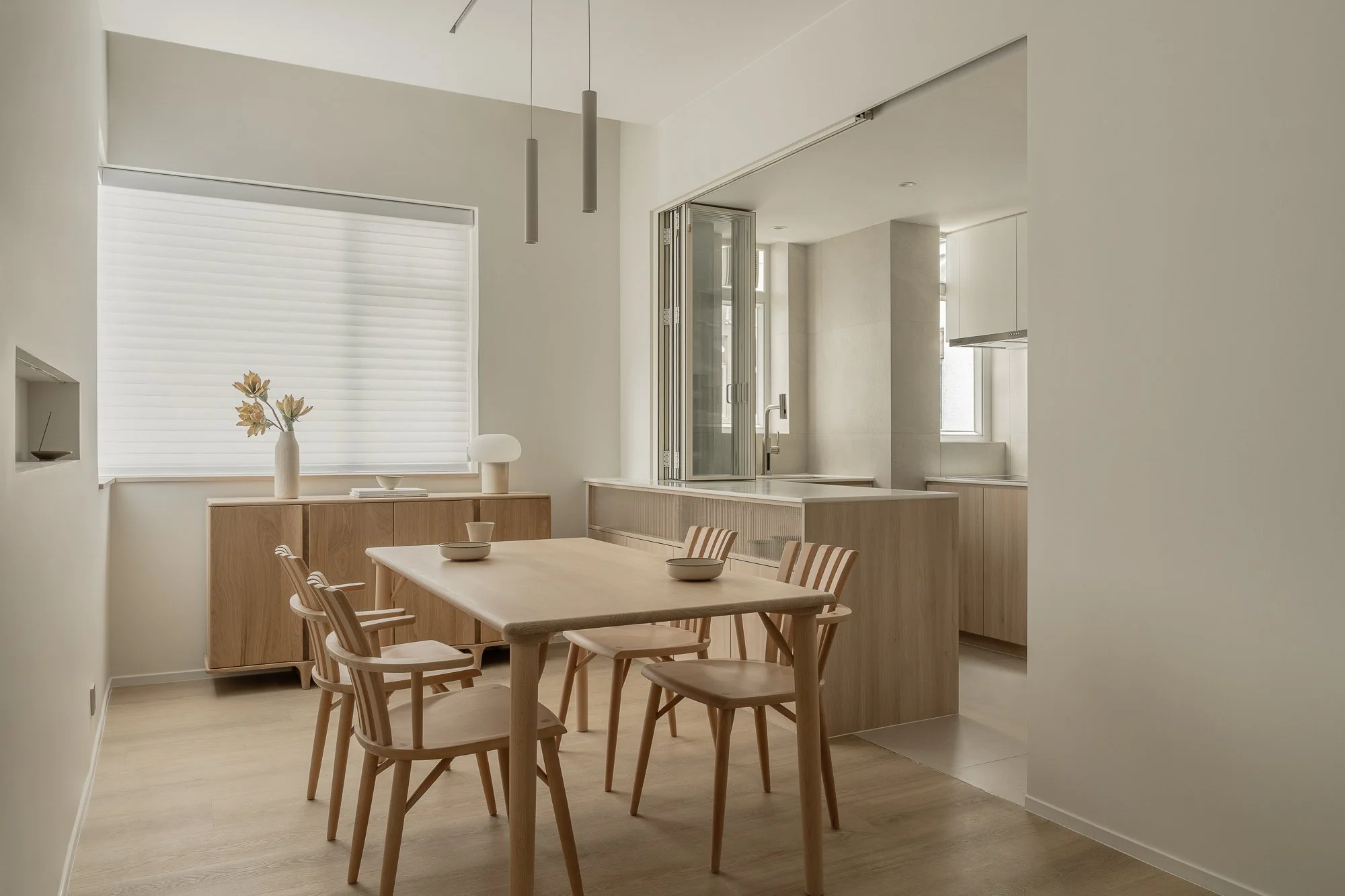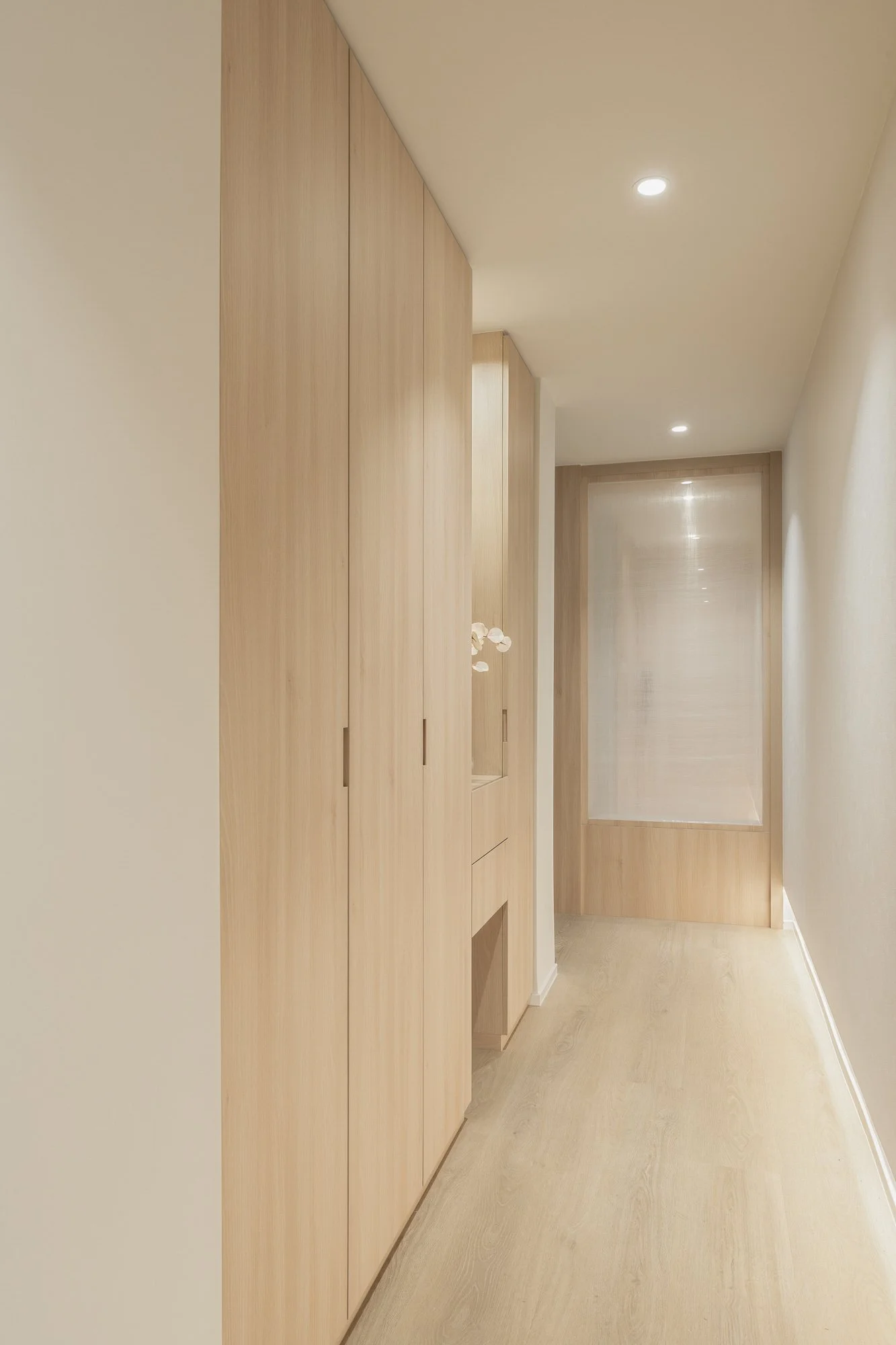 Situated in the historic Happy Valley, this residence incorporates resort-style relaxation into its design, crafting a private sanctuary that harmonizes with abundant natural light, warm timber finishes, and a soft, restrained color palette. Emphasizing generous daylight, timber floors and furnishings establish a welcoming, comforting atmosphere. The overall concept evokes a tranquil, vacation-like retreat—an oasis from urban bustle where residents can unwind and enjoy a serene, restorative home experience.